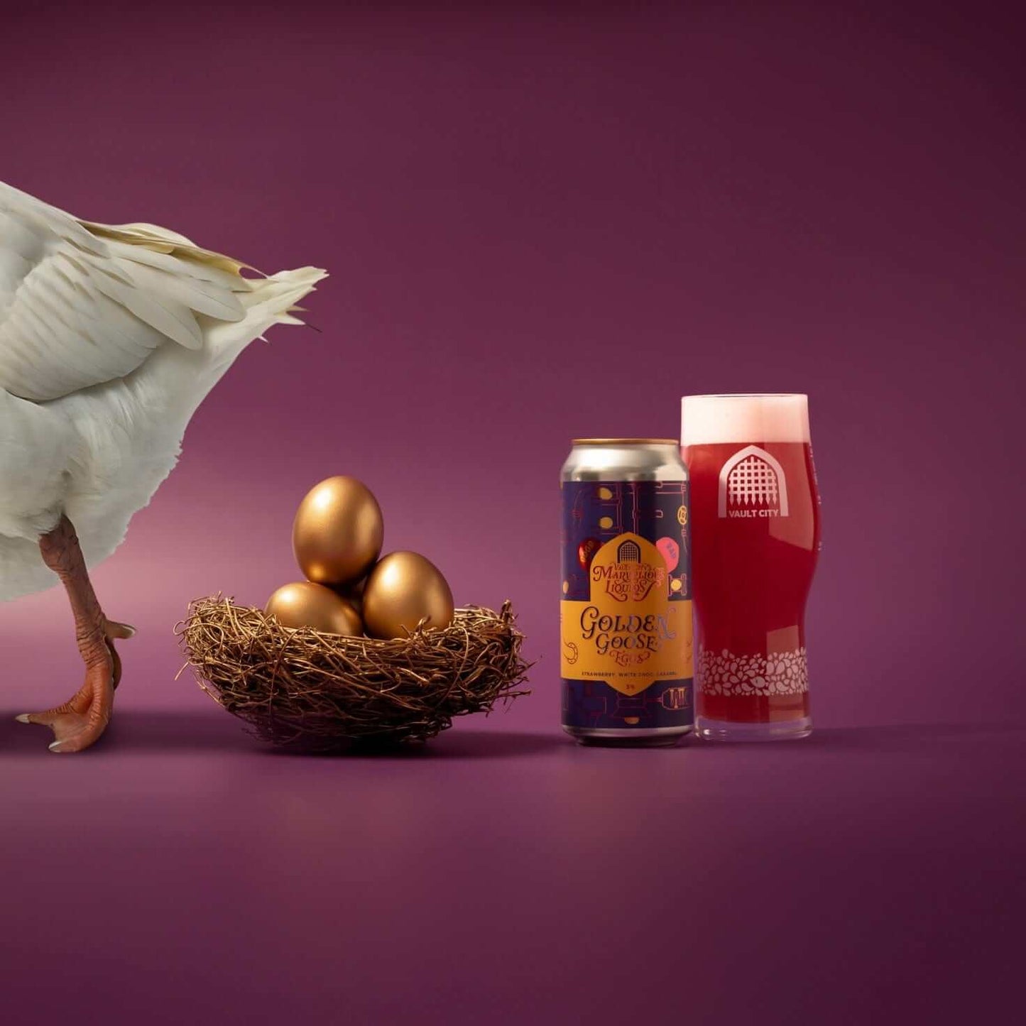 Golden Goose Eggs blends luscious strawberries and raspberries with silky white chocolate and rich caramel, creating a sumptuously smooth sour with a mini egg crunch and a perfect balance of sweet and tart.